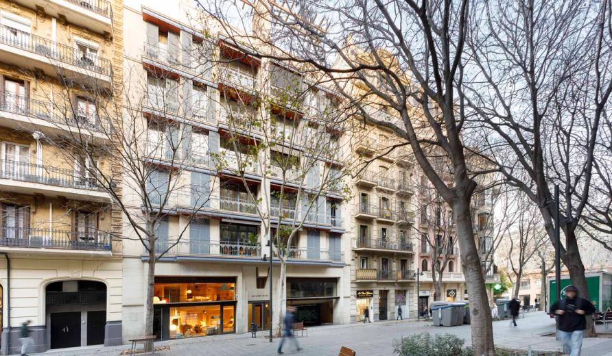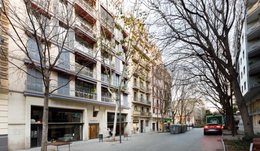 Oficina situada en un edifici mixt d'habitatges en el centre de Barcelona.