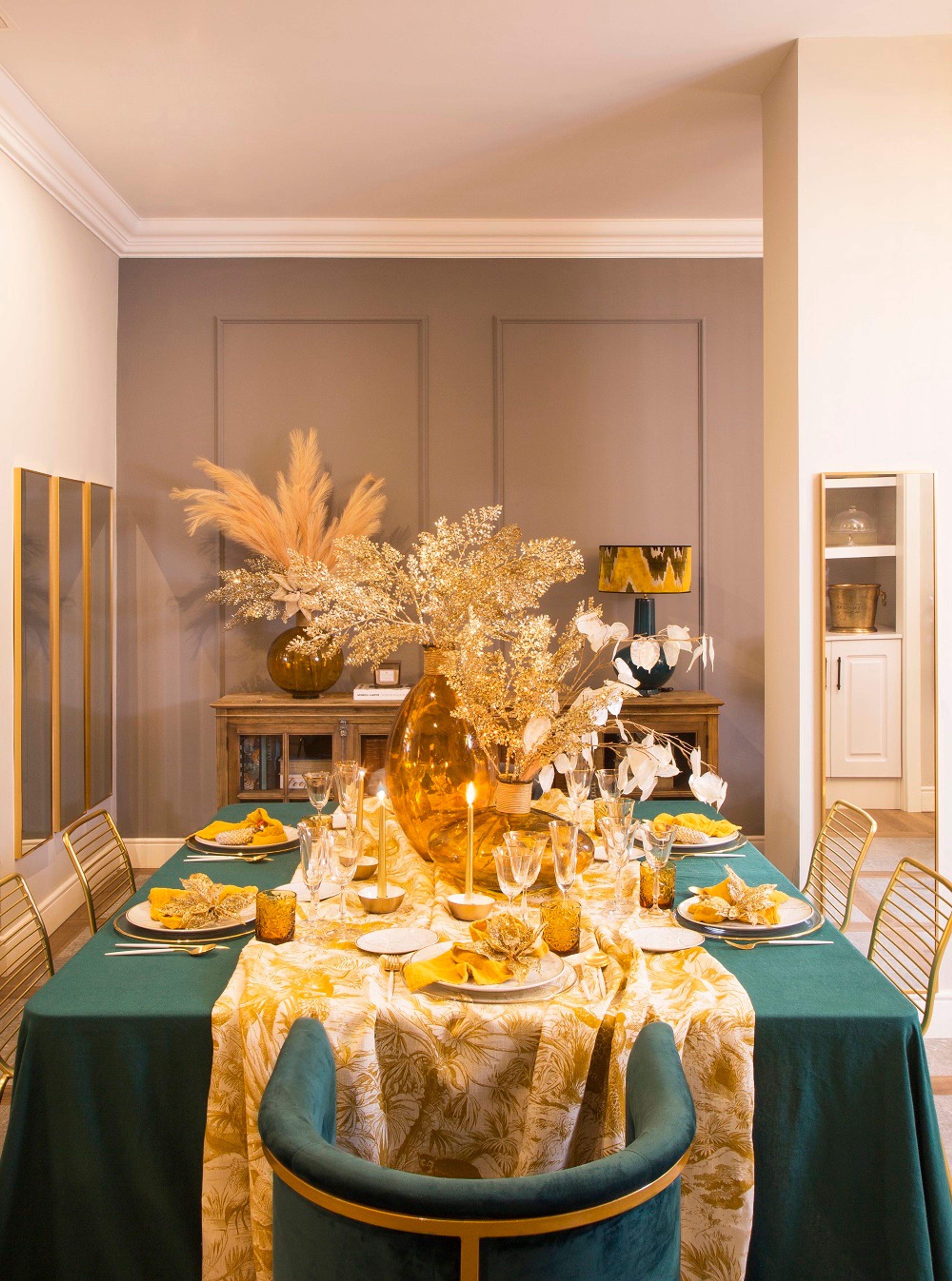 If neutral colors don't convince us and we want to show off more color, Pia Capdevila gives us options for all tastes and suggests “tartan tablecloths, which wonderfully accompany this season; or Toile de Jouy prints, which give a romantic touch to spaces”. Bold prints should not scare us, as they are easy to combine. To do it in the best way, the interior designer often “mixes them with neutral linen bases or with touches of velvet, to play with the prints on napkins, chargers, and with decorative ribbons”.